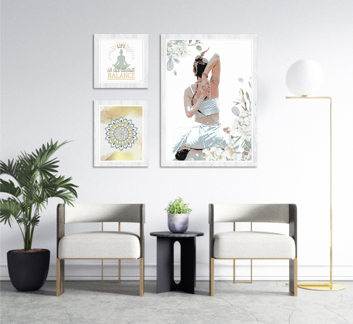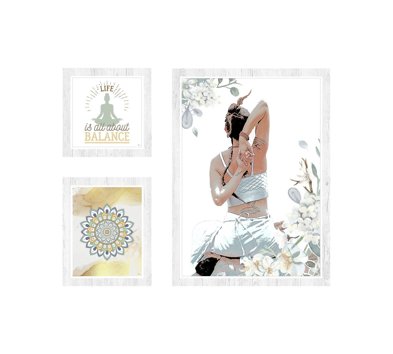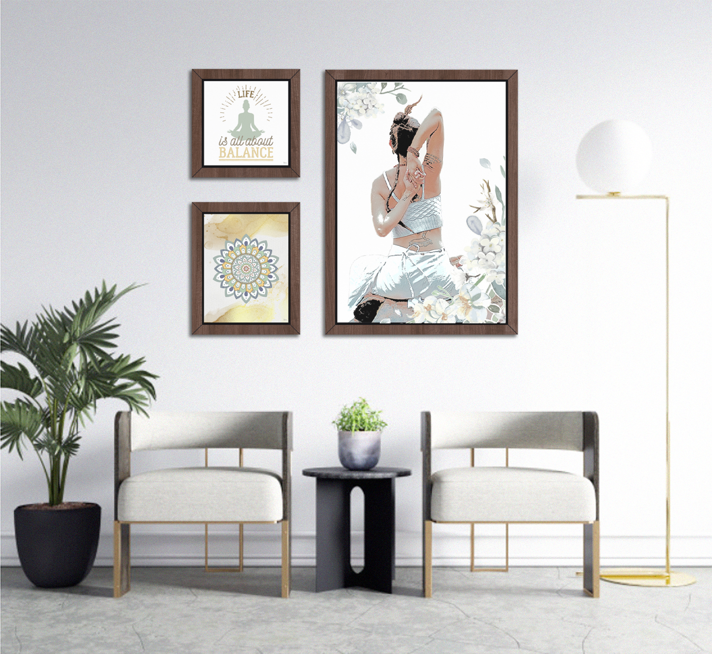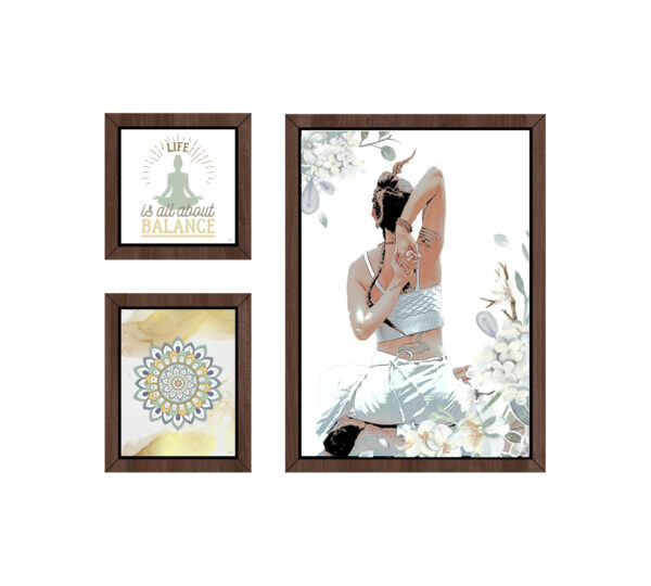 - Conjunto de 3 quadros com molduras em PVC impresso, emitação de madeira.