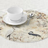 Temos também a possibilidade de ter o mesmo layout para marcadores de pratos, onde podem complementar-se com a toalha, corredor de mesa, naprons ou guardanapos.