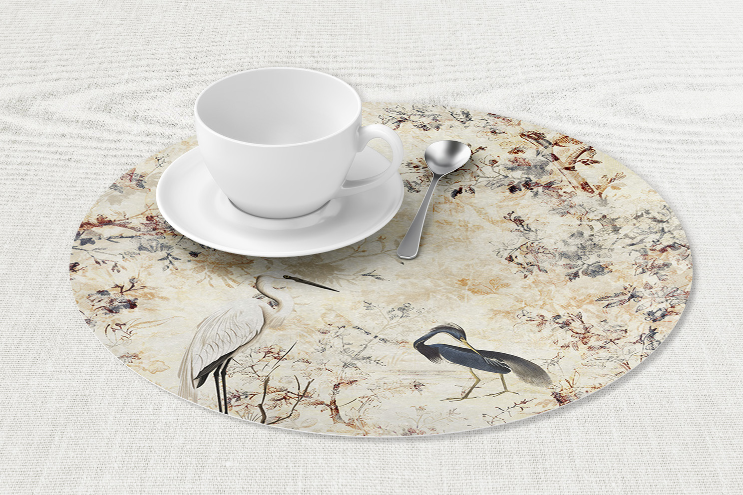 Temos também a possibilidade de ter o mesmo layout para marcadores de pratos, onde podem complementar-se com a toalha, corredor de mesa, naprons ou guardanapos.