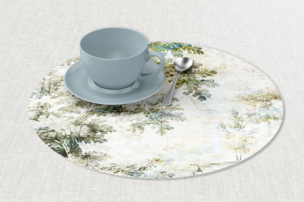 Temos também a possibilidade de ter o mesmo layout para marcadores de pratos, onde podem complementar-se com a toalha, corredor de mesa, naprons ou guardanapos.
