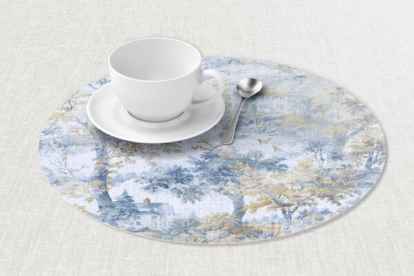 Temos também a possibilidade de ter o mesmo layout para marcadores de pratos, onde podem complementar-se com a toalha, corredor de mesa, naprons ou guardanapos.