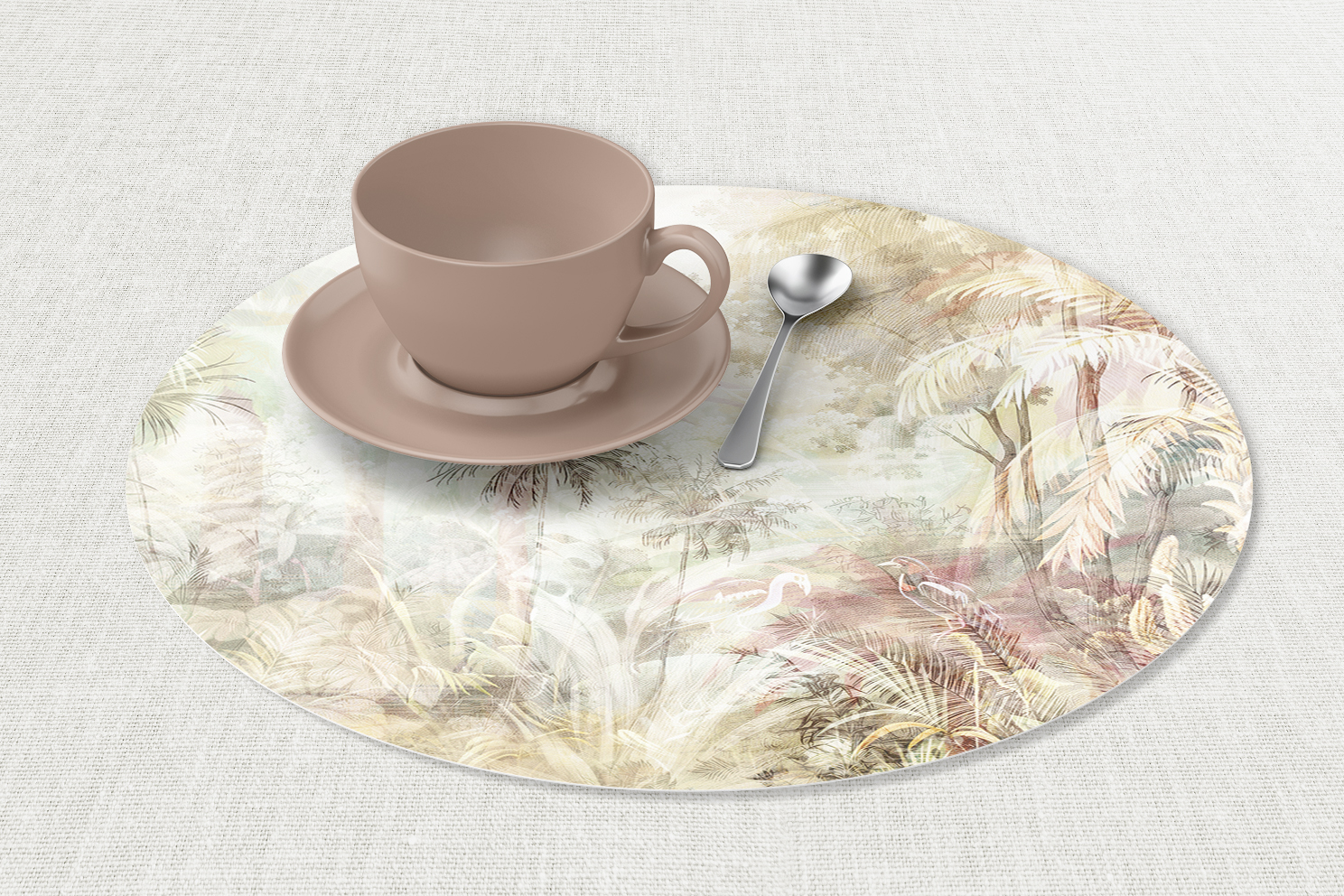 Temos também a possibilidade de ter o mesmo layout para marcadores de pratos, onde podem complementar-se com a toalha, corredor de mesa, naprons ou guardanapos.