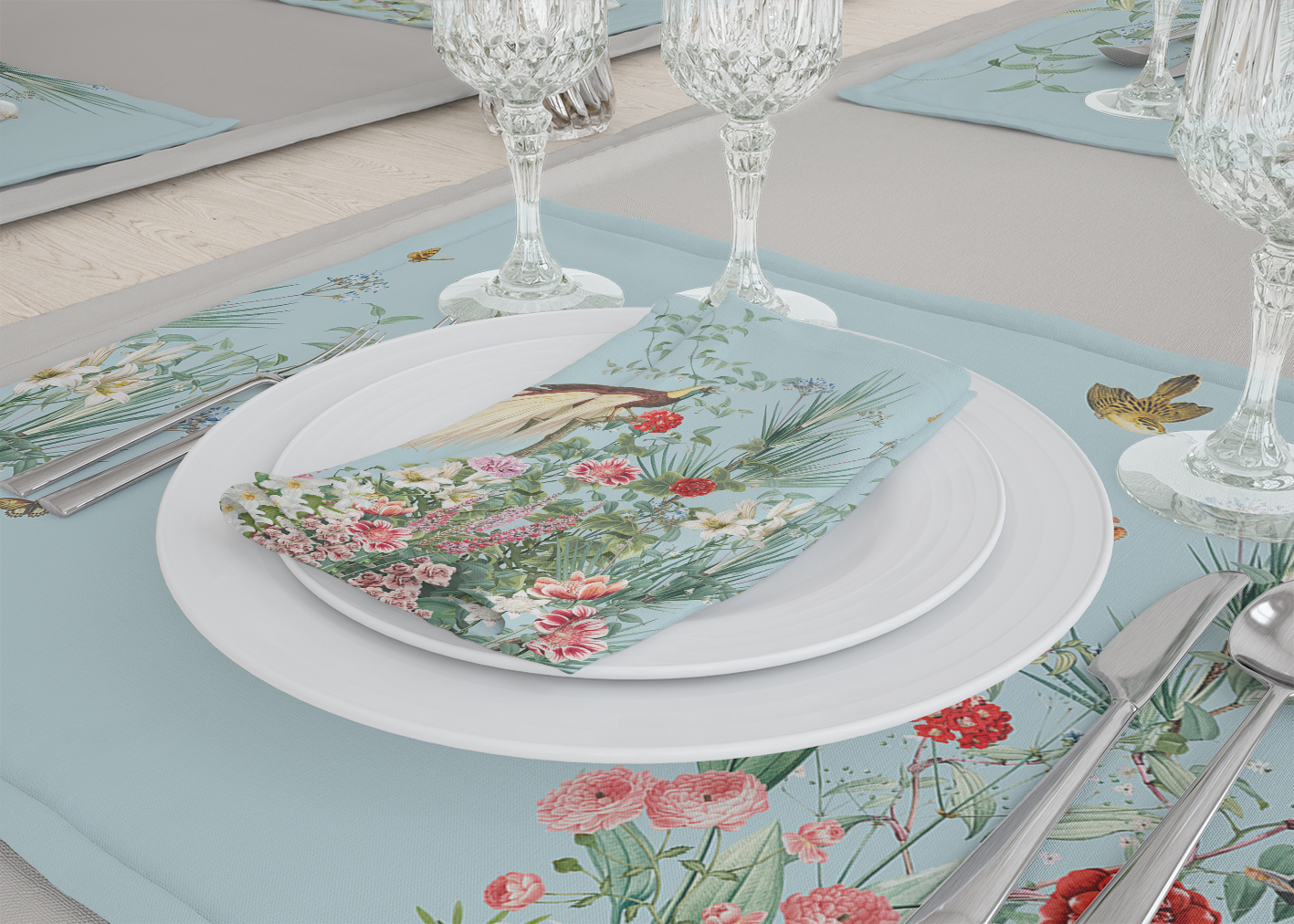 Impressão por sublimação em tecido para artigos de decoração de mesa, combinando estilo, funcionalidade e praticidade.